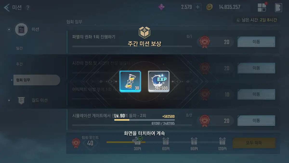 중요한 건 30 60 90 120 협회 포인트를 얻을 때마다 미션 보상으로 대량의 성진우 경험치를 얻을 수 있다는 데 있다.