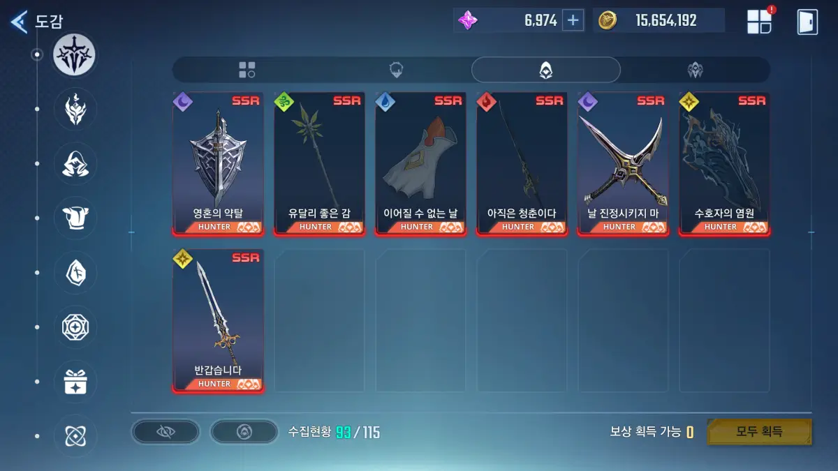 최근 업데이트 후 SR 헌터 무기가 SSR 등급으로 표기 방식이 바뀌었다. SR 헌터 무기 제작은 SSR 헌터 무기와 비교하면 마력 수정은 절반이지만, 마력 암석이라는 재료가 추가로 필요하다.