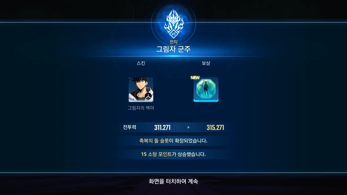전투에서 이기면 애니메이션이 재생된 이후 전직에 성공하면서 그림자의 백야 의상과 축복의 돌 슬롯 +1 보상을 얻는다.