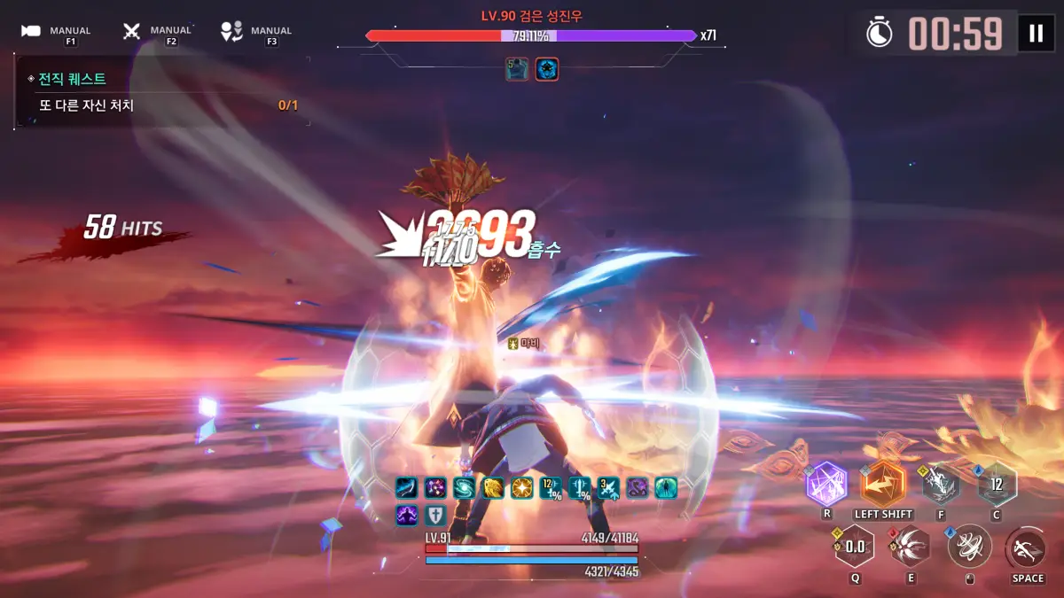 그러다 수속성으로 바꾸면서 그림자 베스티를 소환하는데 HP도 90줄이고 방어가 단단해서 조금 성가시다. 성진우 딜이 약하거나 남은 시간이 짧다면 검은 성진우만 잡는 것이 좋다.