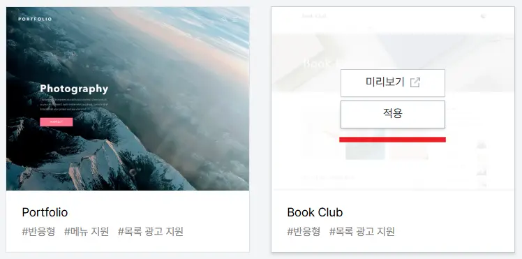 이후 대시보드로 돌아와서 꾸미기 > 스킨 변경을 보면 티스토리 기본 스킨 목록을 볼 수 있다.