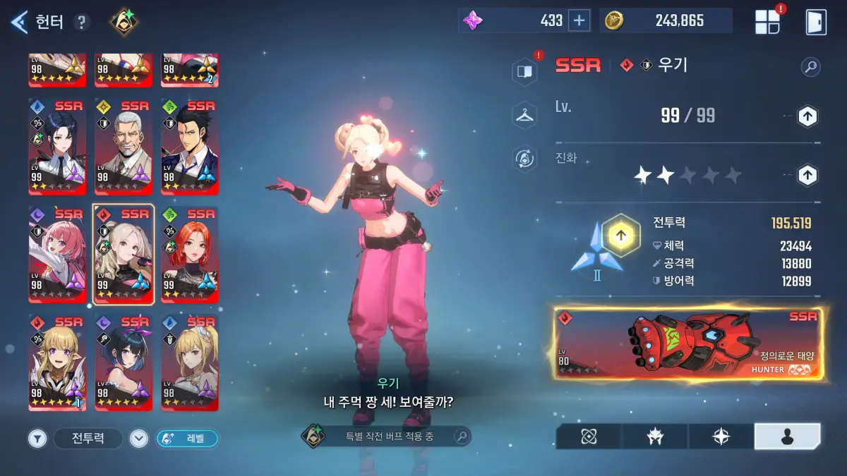 이렇게 5성을 만든 다음에는 특별 진화 이벤트에서 헌터 데이터를 얻어 초월 1성이 되었다.