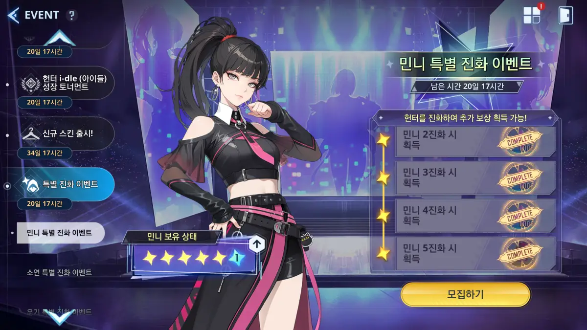 결과적으로 이번 아이들 콜라보 기간 안에 민니는 초월 1성을 만들 수 있었다.