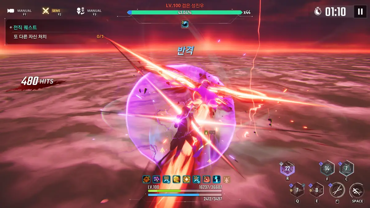 퀘스트를 시작하면 언제나 그랬듯 검은 성진우가 나와서 반겨주는데 제한시간 내 격퇴하면 된다.
