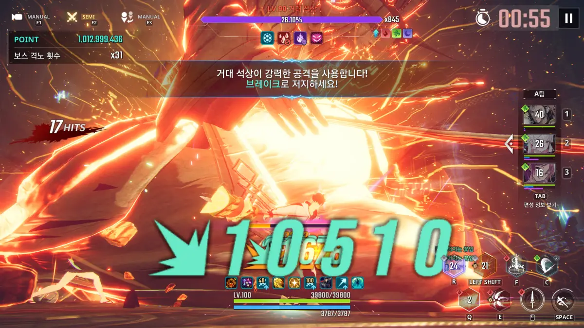 다른 공격 패턴은 제자리에서 불길 같은 것을 주변에 방출하지만, 역시 워닝 사인이 있으니 타이밍 회피를 하면 무난하다.