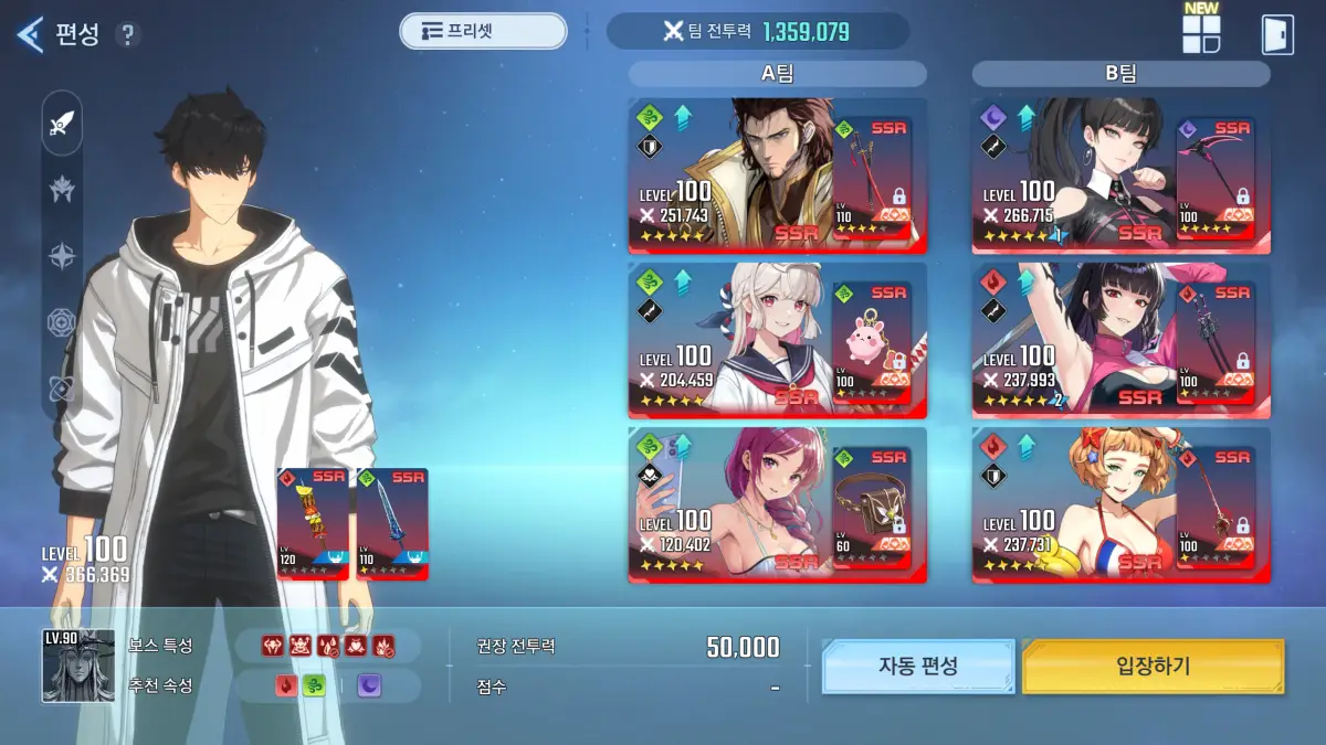 게임은 그림자 병사를 제외한 성진우와 A B팀 각 3명씩 헌터를 편성할 수 있다. 약점 속성이 있으니 활용하는 것이 좋고 브레이크 헌터는 1~2명만 넣어도 충분하다.