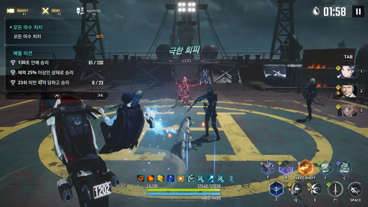 그러고 보니 전투는 시뮬레이션 게이트에서 잡몹이 나오던 부두 맵을 똑같이 가져왔다. 노말 전투는 어렵지 않은데 배틀 트로피 피격 미션에 주의하면서 진행하면 무난한다.
