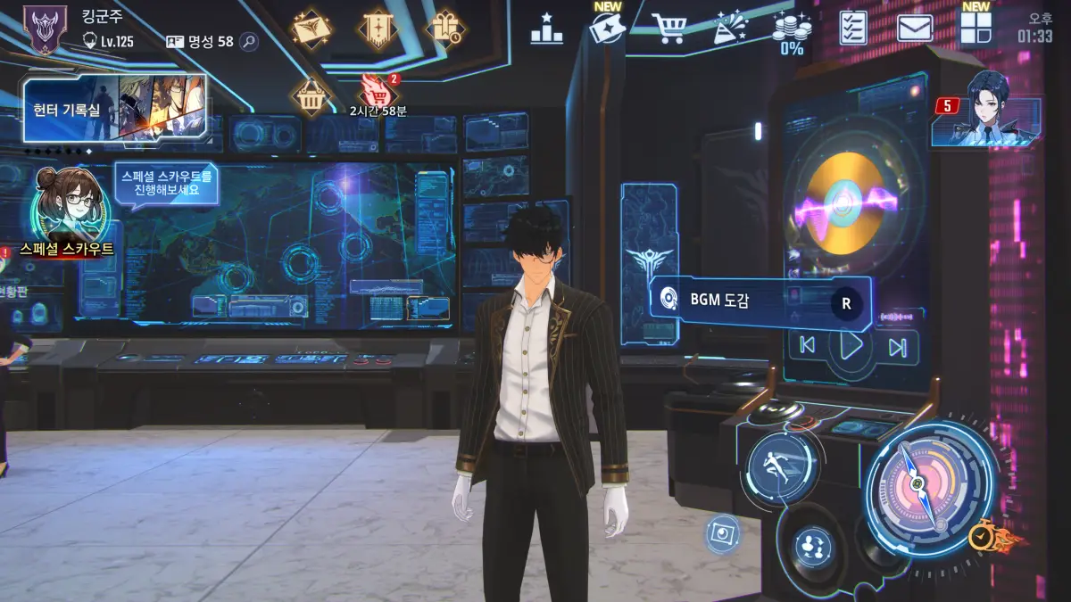 로비 화면 게이트 현황판 NPC 근처로 오면 레코드판과 비슷한 BGM 도감을 찾을 수 있다.
