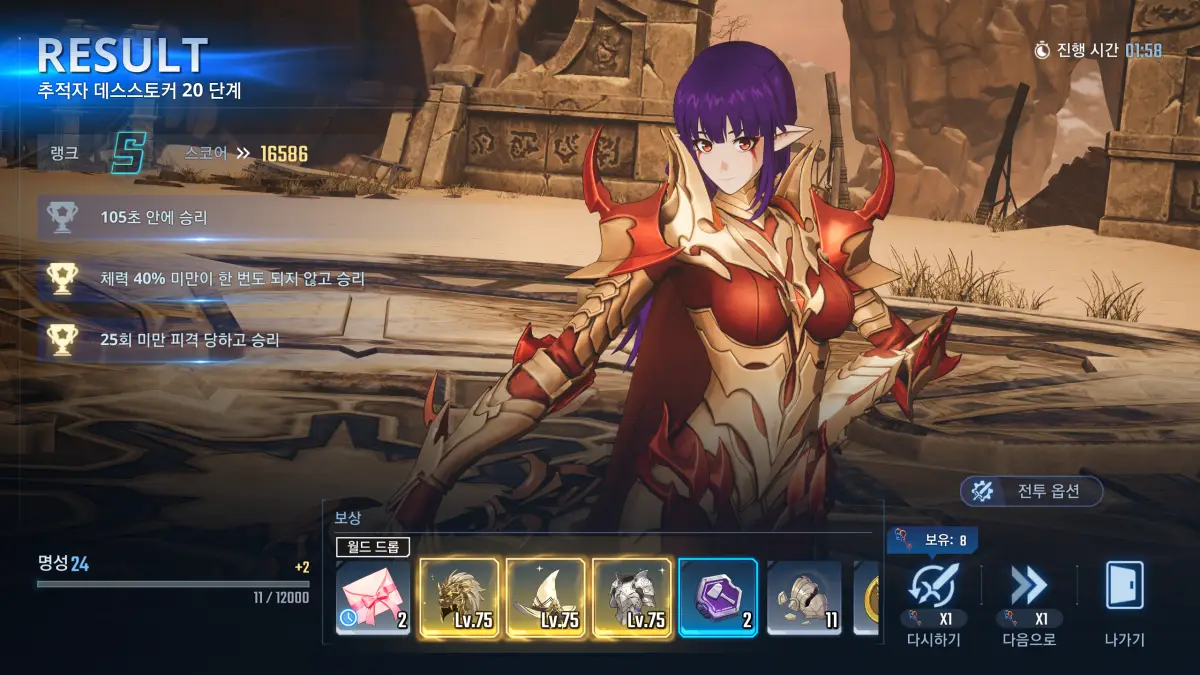 예를 들어 위는 3배수 플레이를 설정한 모습으로 던전을 클리어했더니 보상을 X3으로 획득했다.
